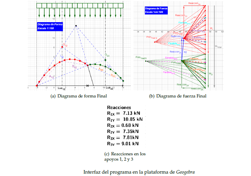 Por último, se muestra el comportamiento de la estructura en la plataforma Geogebra en función de los parámetros principales cómo el peso y el factor de escala!