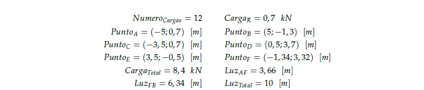 Tal y cómo se ha definido en la programación, se ha definido como valores paramétricos tanto la carga asociada a cada nodo interior que será uniforme para todos como el factor de escala ζ, dando la oportunidad al usuario de componer diferentes soluciones de estructuras.