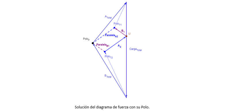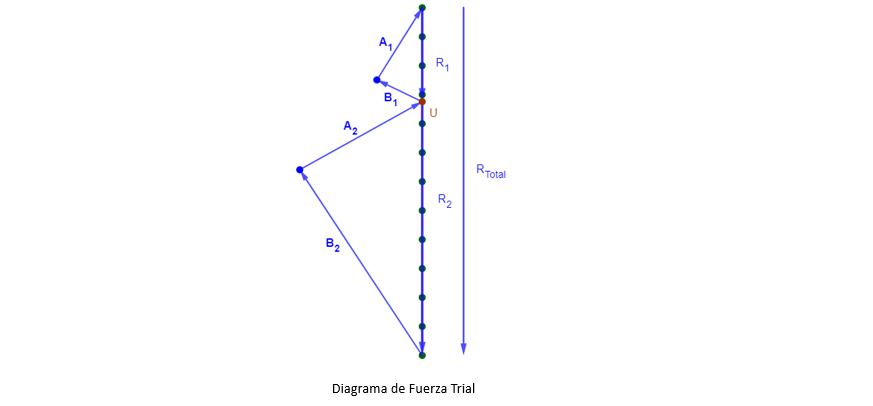 Una vez establecido dichos puntos, se trazan paralelas con A1, A2, B1 y B2 cómo se muestra en la Figura anterior, y se construye el diagrama de fuerza Trial.