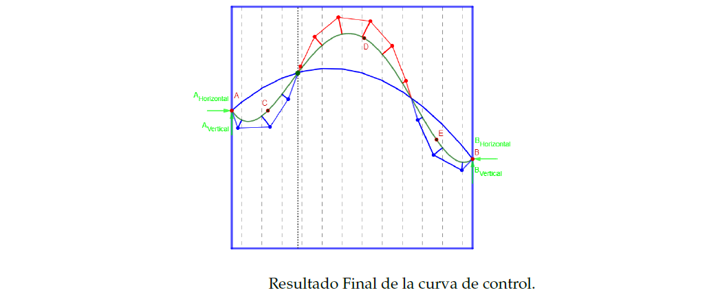 Como se ha comentado anteriormente, la funicular es una posible solución sin flexión, para trasladar la misma definición a la curva de control es necesario aplicarle un momento proporcional a la desviación con respecto a la funicular establecida.