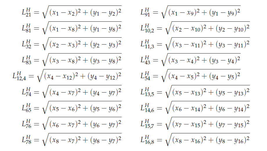 Las longitudes de las ramas ji en la Malla Primal Γ están definidas mediante LHji, véase Figura 2.4.