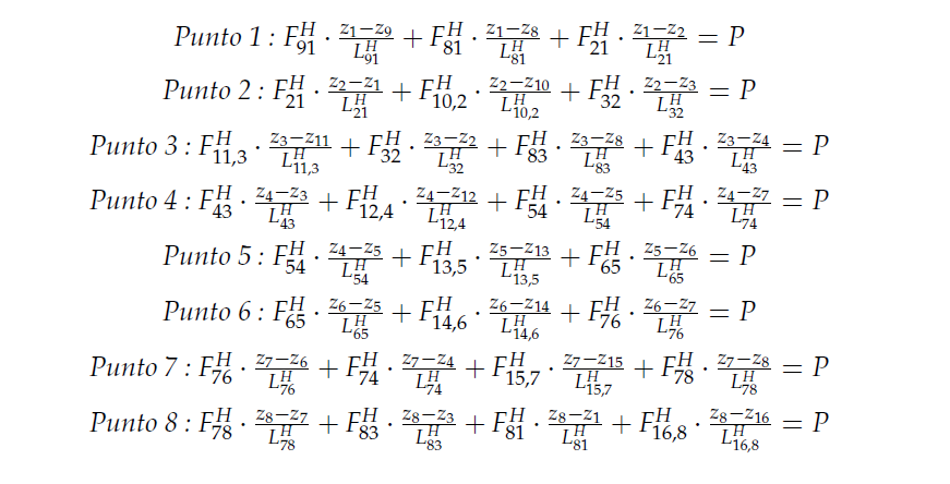 - Para cada par de apoyos ij, se establecen los puntos paramétricos Gij, hacen referencia al ángulo que definirá la reacción total en los apoyos.