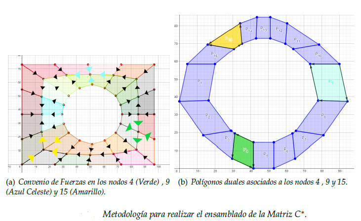 A partir de esta malla se puede construir la matriz de relaciones del diagrama recíproco C* de dimensiones m x p siendo m el número de líneas de fuerza y p el número de polígonos de la malla original, que en la dual se han convertido en puntos.