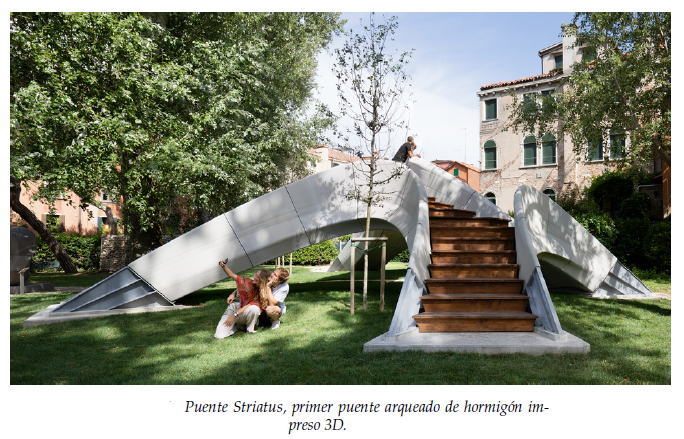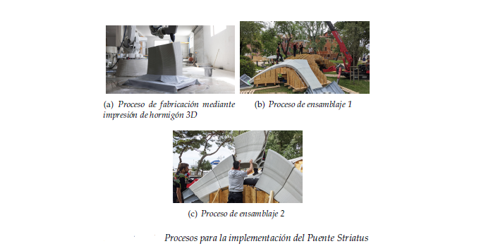 La segunda propuesta como ejemplo realizado mediante la resolución matricial es el Puente Striatus, realizado gracias tanto al grupo de investigación Block Research Group cómo a la firma británica de arquitectura Zaha Hadid Architects.